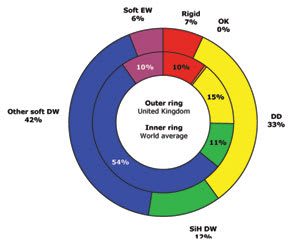 Among our surveyed markets, the one that differs most from the typical world situation is Norway (Figure 4). Its use of rigid lenses is well below the average (2 percent for Norway vs. 10 percent for the world average), while Norwegian practitioners use many more daily disposable lenses (32 percent vs. 15 percent worldwide) and soft extended wear lenses (24 percent vs. 10 percent) than are generally employed around the world. Russia also represents a very different market; practitioners there fit only 1 percent of lens patients with rigid lenses, and their use of daily disposable lenses (6 percent vs. 15 percent worldwide) and silicone hydrogels for daily wear (2 percent vs. 11 percent) show rather different fitting trends than those elsewhere. Australia's market most closely resembles the overall global picture.